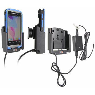 Vehicle Charging Cradle for Hard-Wired Installation. (For device with TC55 Boot.) Includes Tilt-Swivel to angle cradle 15 degrees any direction – Rotate between portrait and landscape view. Charging cable permanently attached to holder – Cord length with black box is 96 inch / 243 cm – Black power conversion box is 3 inch / 7.6 cm – Provides 10 Watts (2A) charging power – Hard-wire to 12 / 24 V vehicle power sources – Black box converts from 12 / 24 V to 5 V output – LED illuminated power indicator
